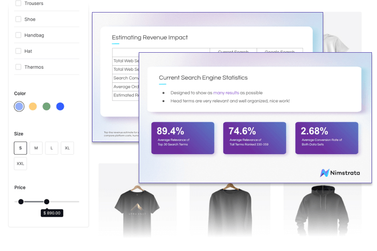 We'll create a comprehensive, industry-leading Search Relevance Report that uncovers gaps in your current product discovery solutions and evaluates your store's readiness to adopt AI-powered conversational commerce capabilities.