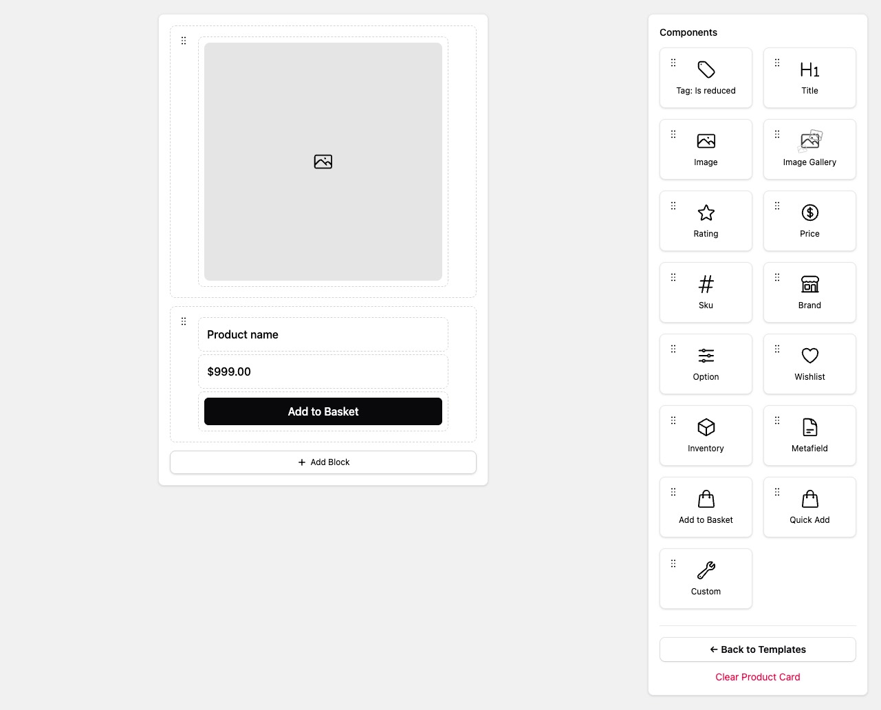 The Product Card Builder controls Nimstrata App Block product cards. It does not replace Shopify's native product cards outside of the Nimstrata storefront experience.